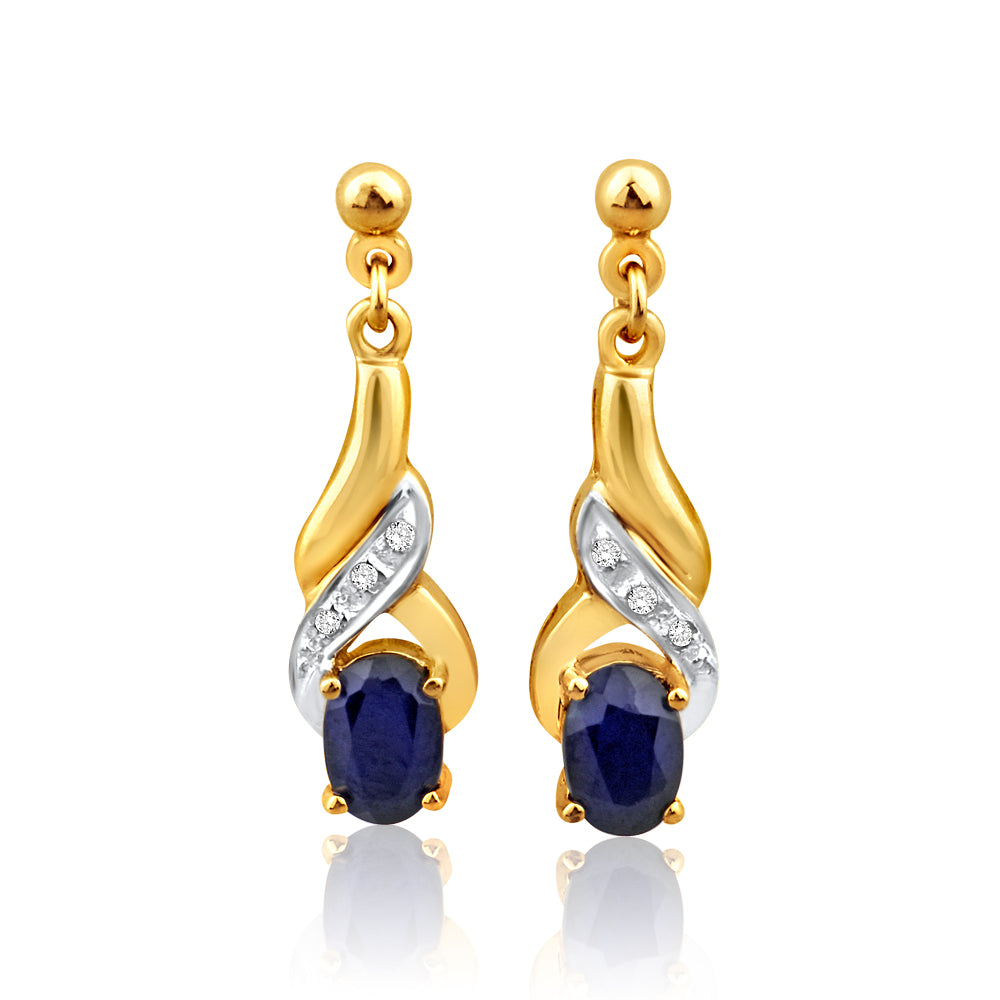 9ct Alluring Yellow Gold Natural Sapphire and Diamond Drop Earrings