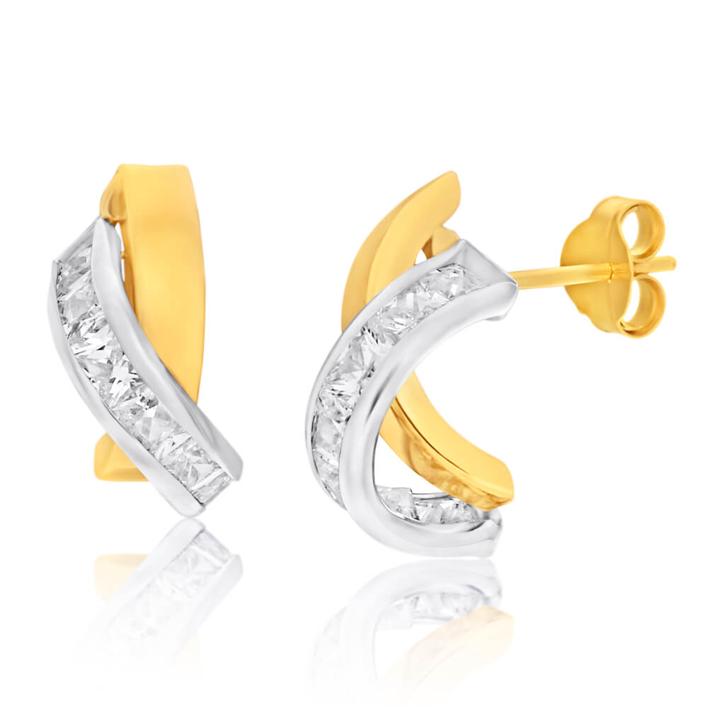 9ct Alluring Yellow Gold & White Gold Cubic Zirconia Stud Earrings