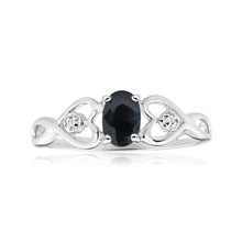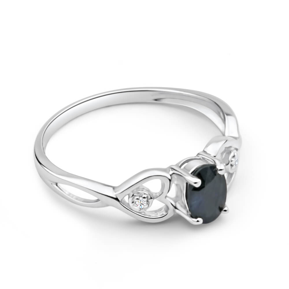 9ct Charming White Gold Diamond + Natural Sapphire Ring