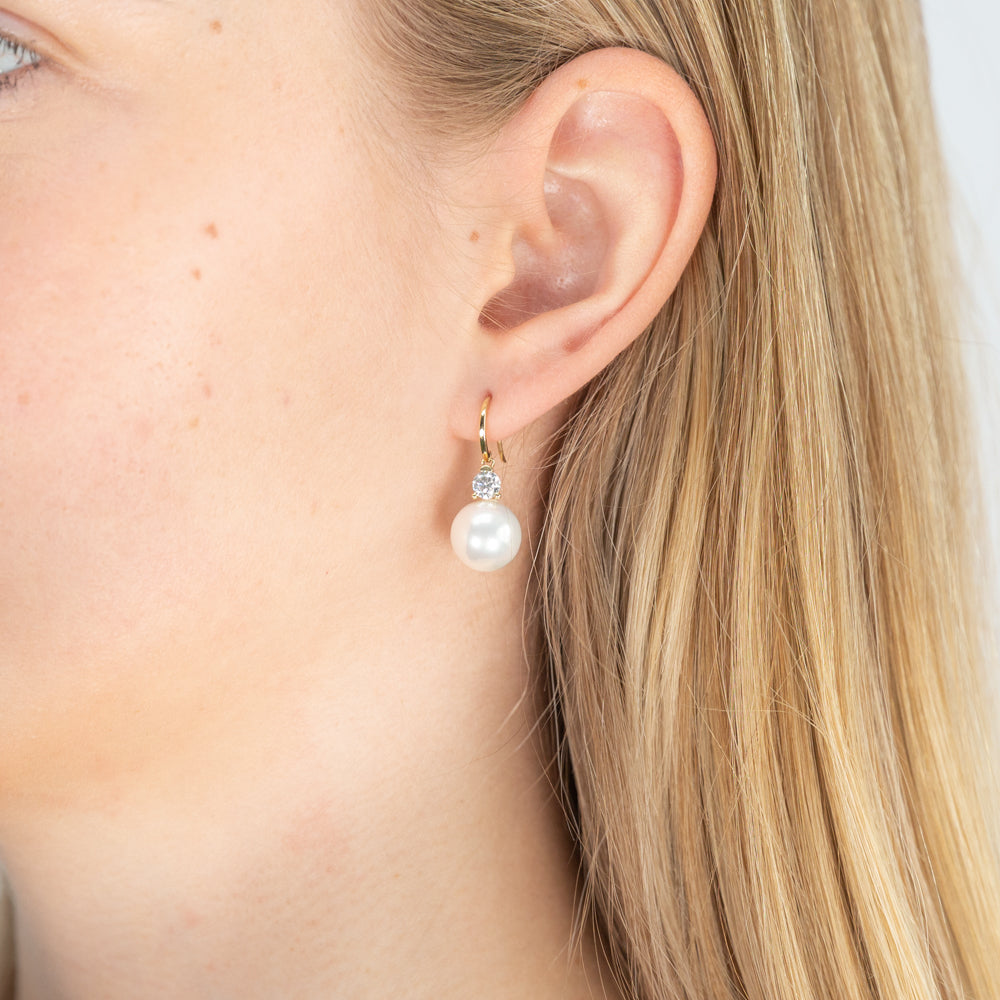 9ct Charming Yellow Gold 10mm Simulated Pearl and Cubic Zirconia Drop Earrings