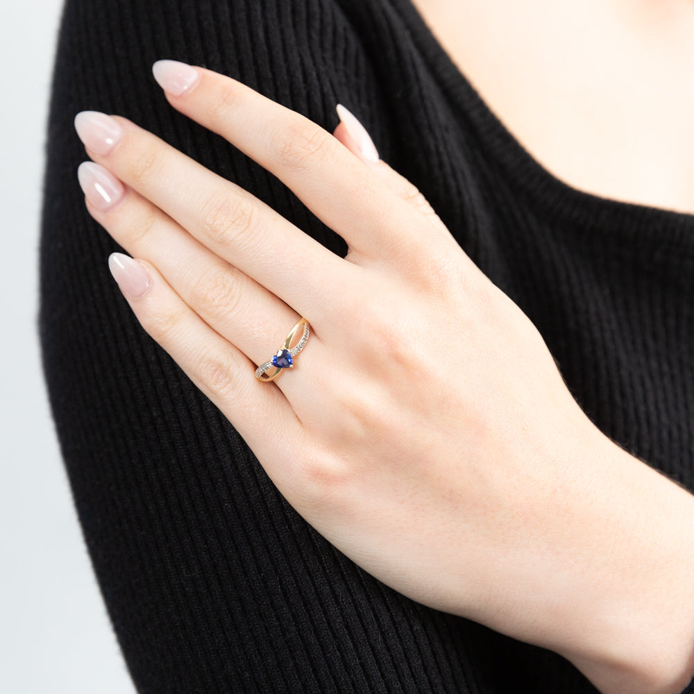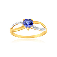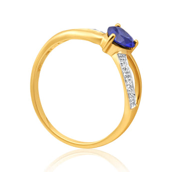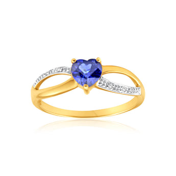 9ct Charming Yellow Gold Created Sapphire + Diamond Ring