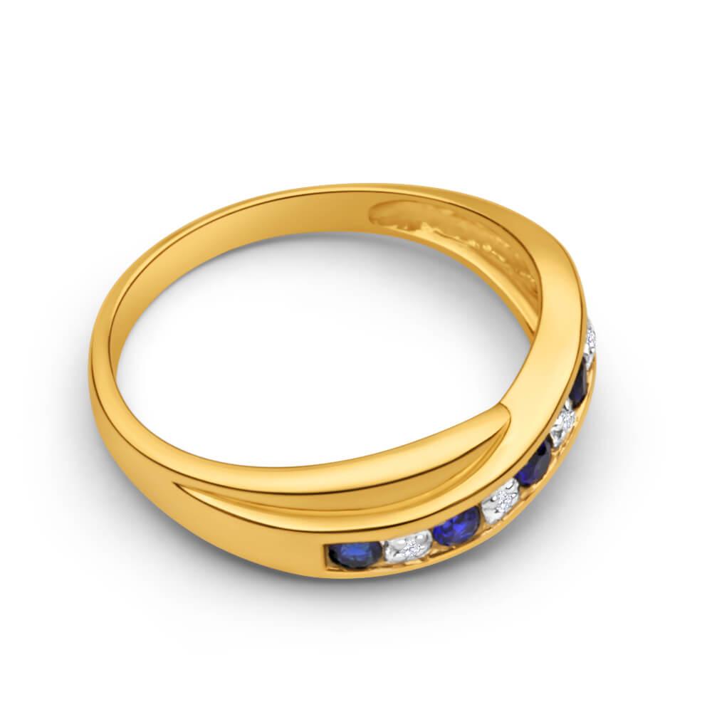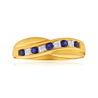 9ct Dazzling Yellow Gold Created Sapphire + Diamond Ring