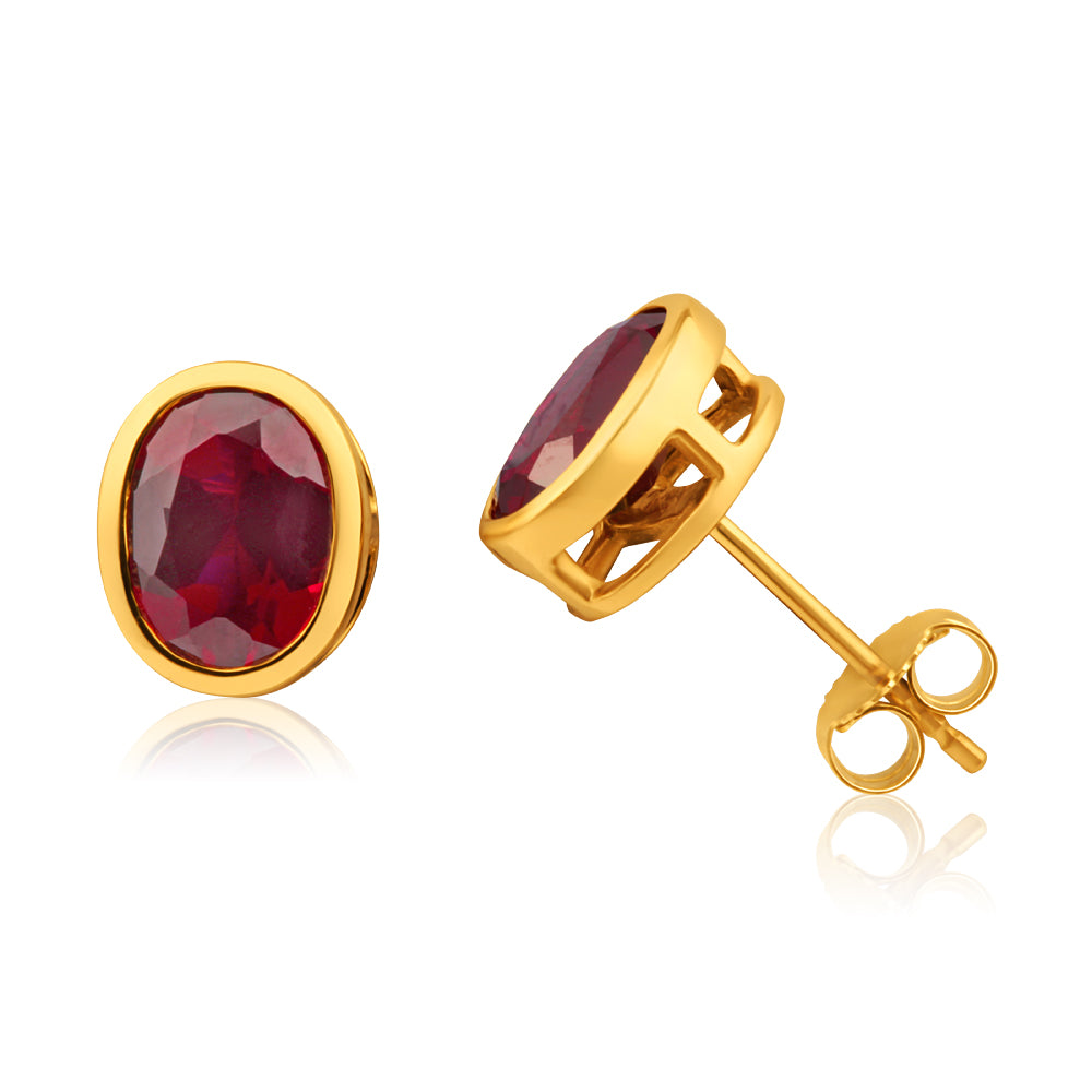 9ct Elegant Yellow Gold Created Ruby Stud Earrings 8x6mm