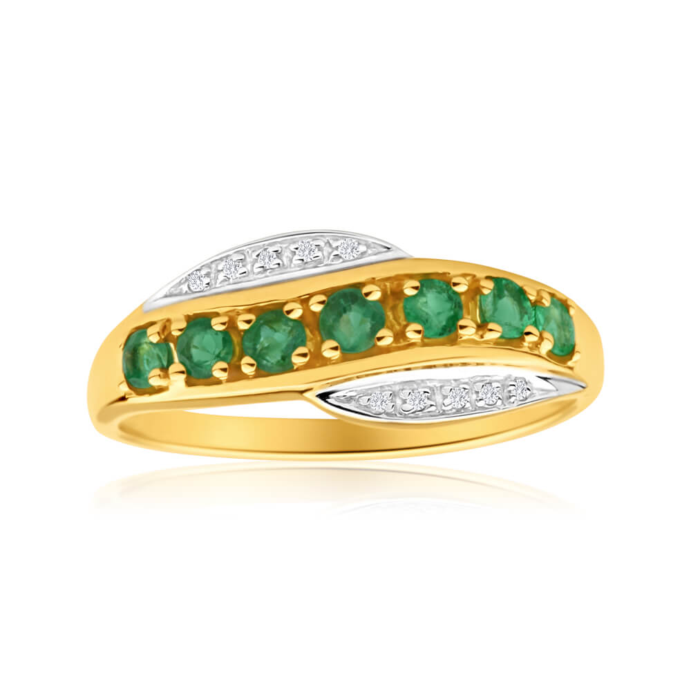 9ct Elegant Yellow Gold Diamond + Emerald Ring