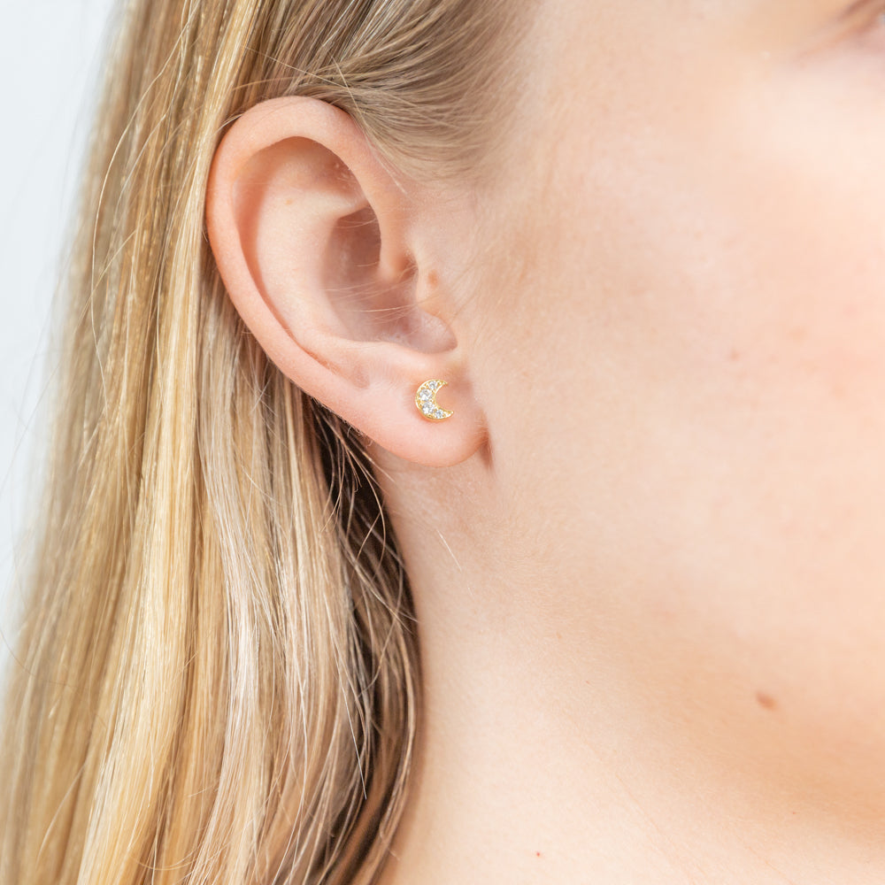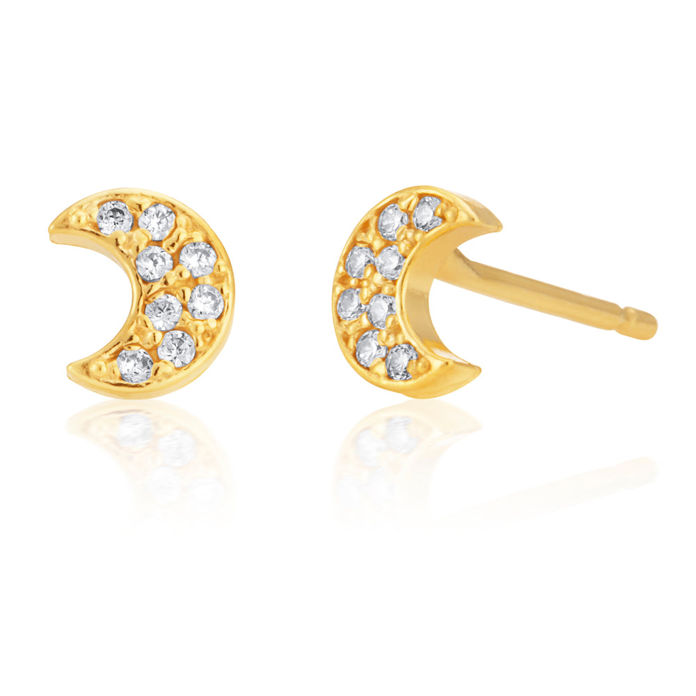 9ct Gold Filled Cubic Zirconia Moon Shape Stud Earrings