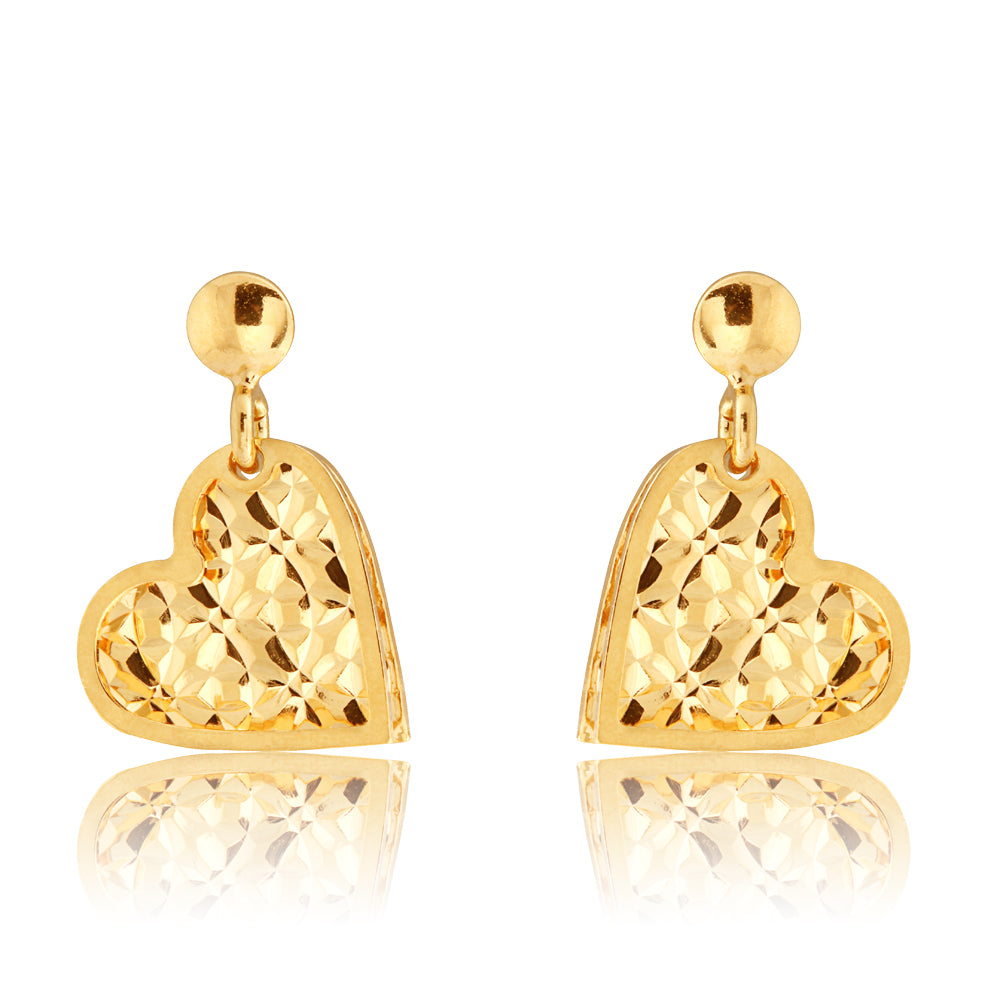 9ct Gold Silverfilled Heart Drop Earrings