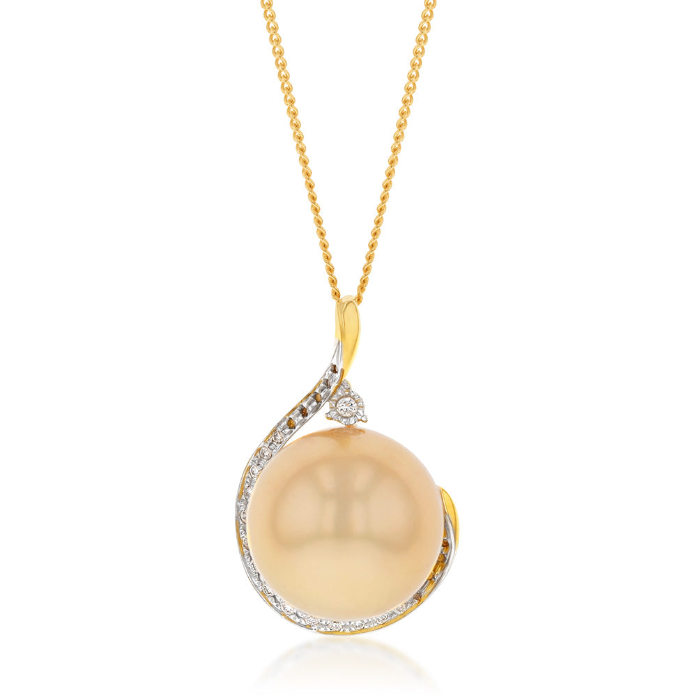 9ct Golden South Sea Pearl Pendant on 9ct 45cm chain