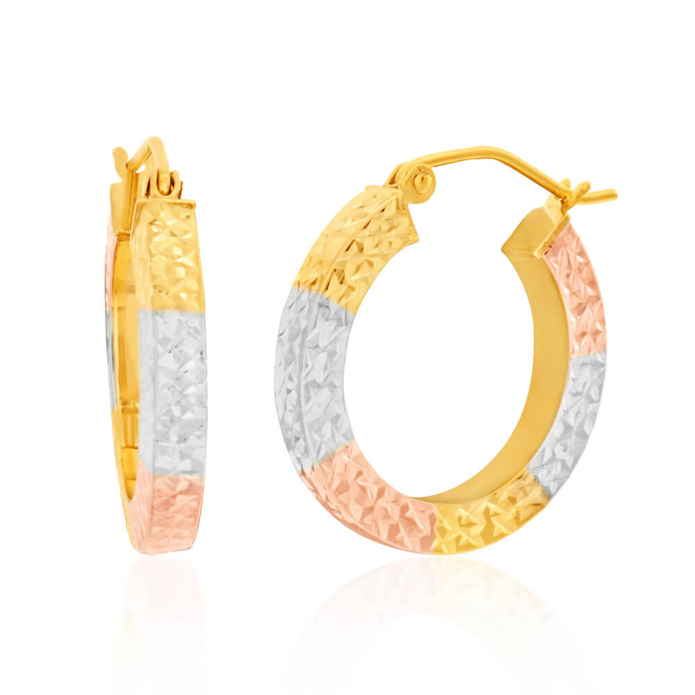 9ct Mutlitone Gold Silver Filled Square Hoops Earrings