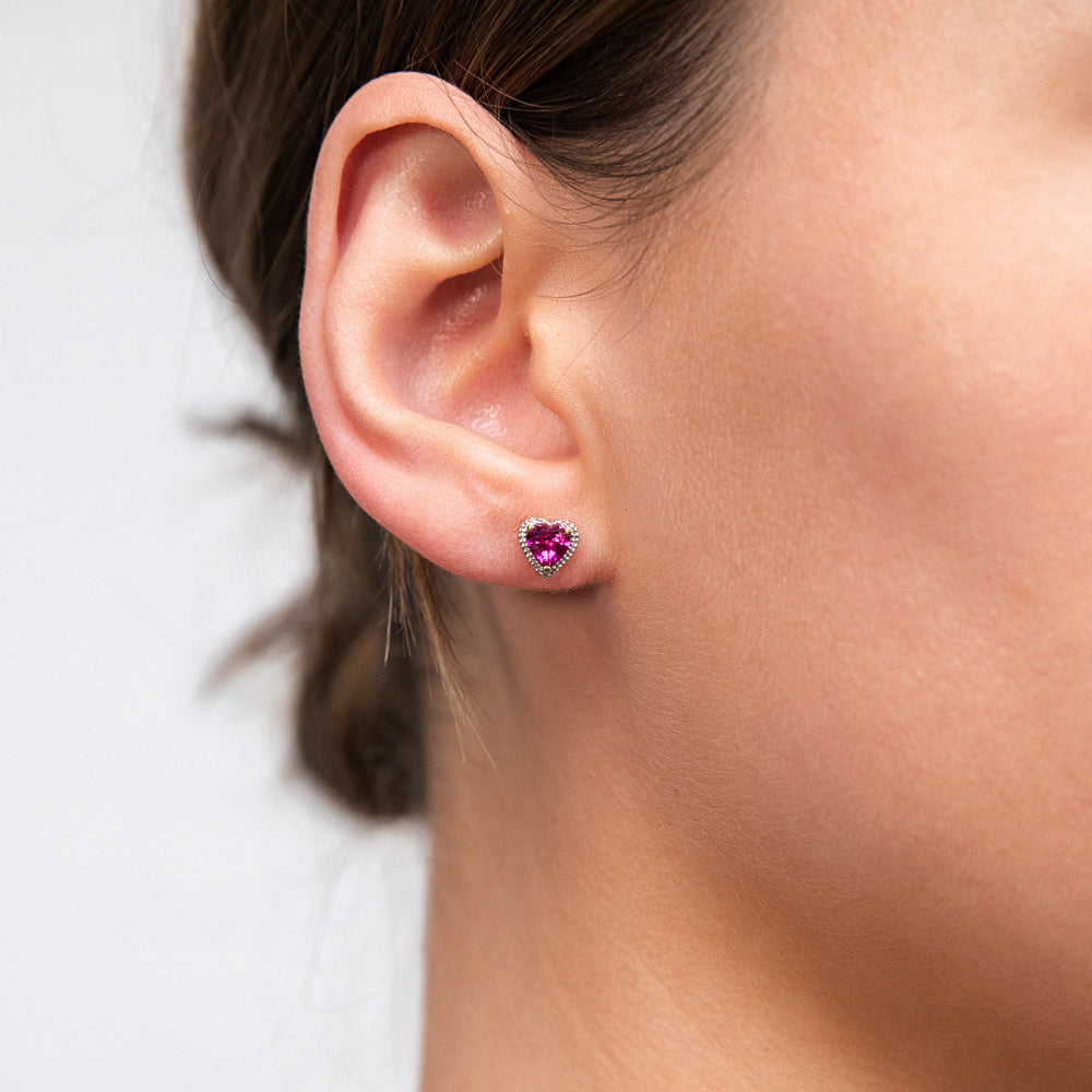 9ct Radiant Yellow Gold Created Ruby + Diamond Stud Earrings