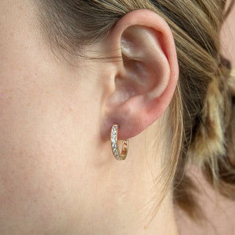These 9ct Radiant Yellow Gold Cubic Zirconia Hoop Earrings are full of brilliant colour and sparkle. This simple hoop design is classic and versatile, yet the channel of glimmering zirconia crystals in this pair makes for a striking statement look. Each expertly cut stone offers its own glint and brightness, with the presence of 9ct yellow gold adding to the show of colour. These timeless hoops are comfortable and nicely sized at 16mm for subtle but gorgeous appearance.