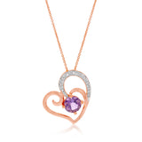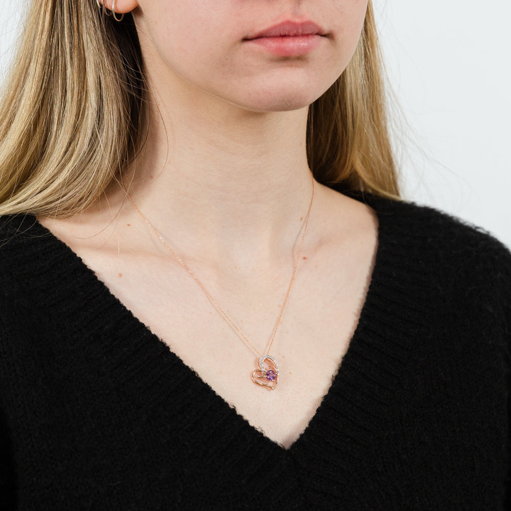 9ct Rose Amethyst and Diamond Heart Pendant on 45cm Chain