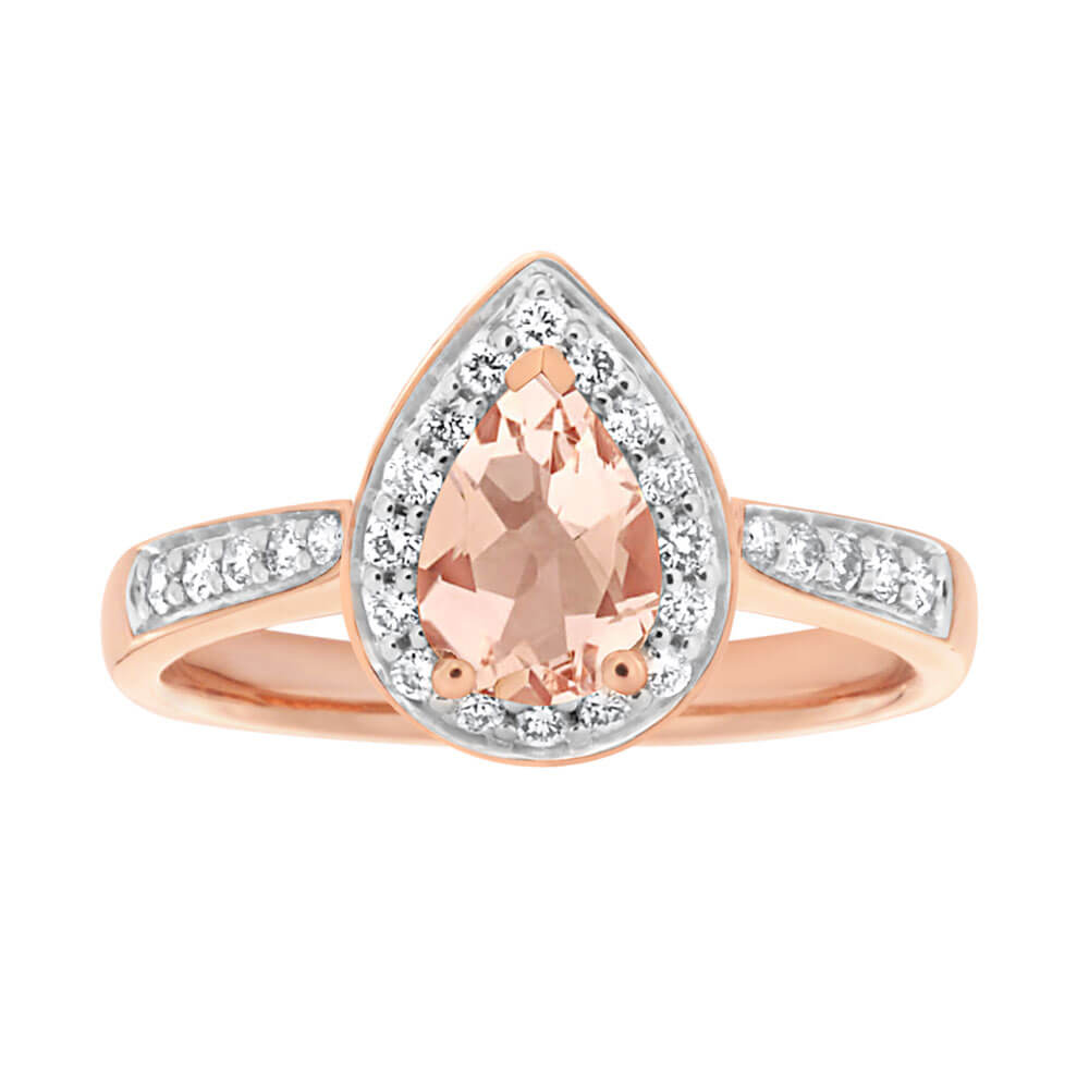 9ct Rose Gold 0.6ct Morganite and 0.20 Carat Diamond Ring