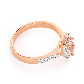9ct Rose Gold 0.6ct Morganite and 0.20 Carat Diamond Ring