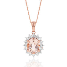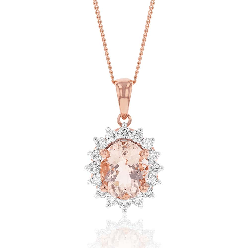 9ct Rose Gold 2.30ct Morganite and Diamond Pendant on 45cm 9ct Rose Gold Chain
