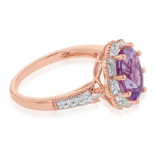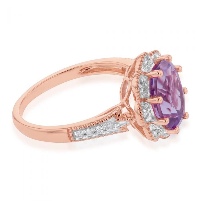 9ct Rose Gold 2.40ct Amethyst and 1/10 Carat Diamond Ring