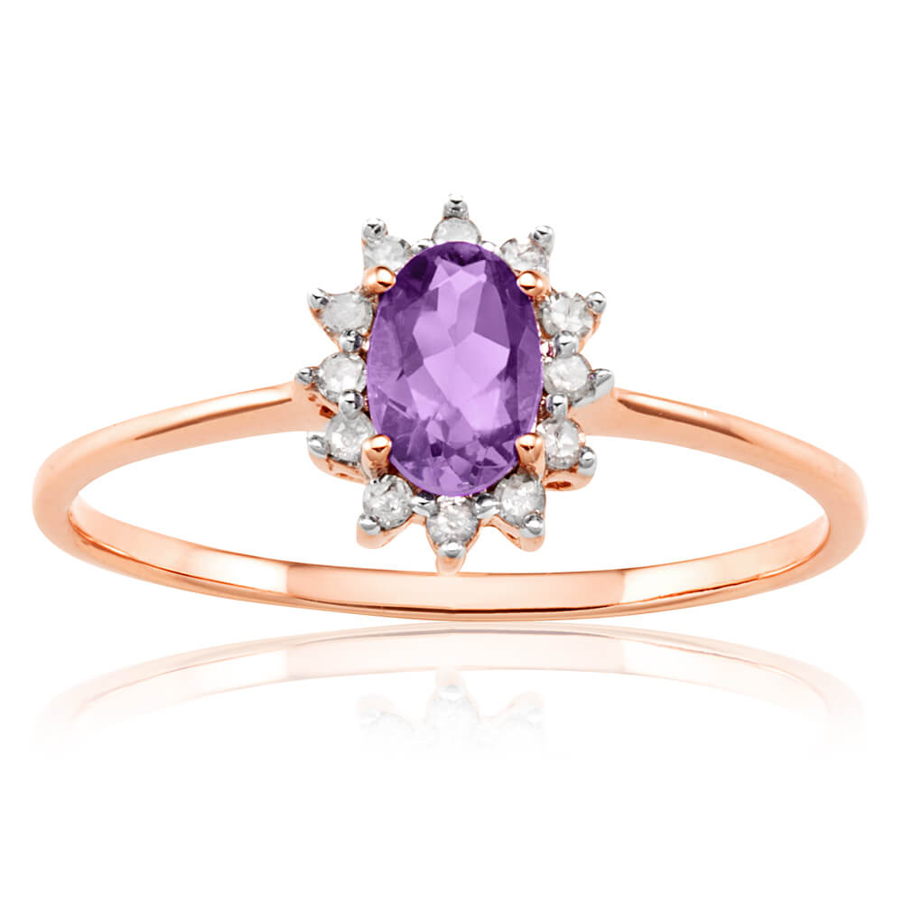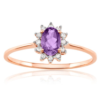 9ct Rose Gold 6x4mm Amethyst + 0.1 Carat Diamond Ring