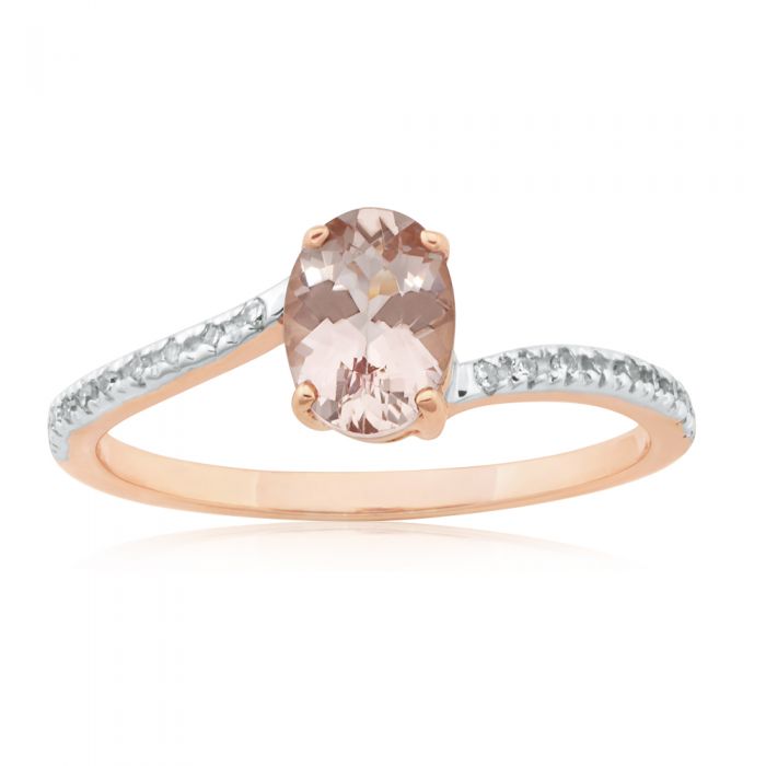 9ct Rose Gold 7x5mm 0.80ct Morganite & Diamond Ring