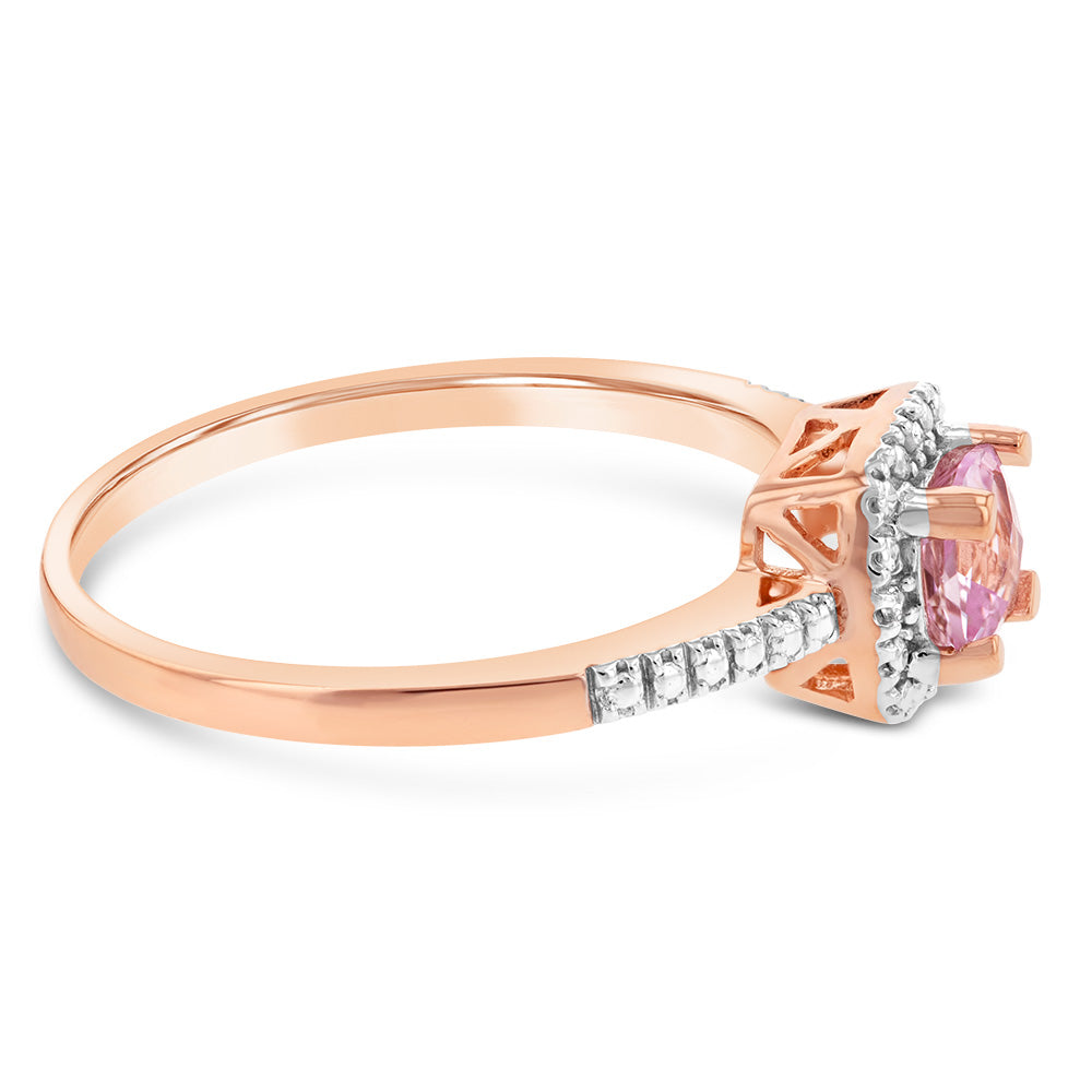 9ct Rose Gold Created Morganite And Diamond Cushion Ring