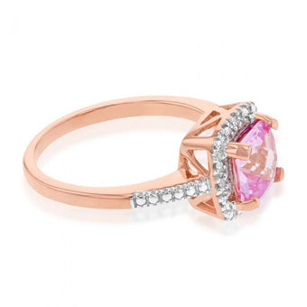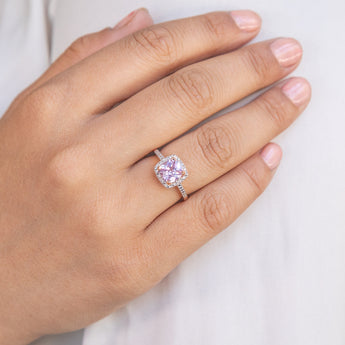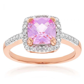 9ct Rose Gold Created Peach Sapphire and Diamond Accented Cushion Cut Ring
