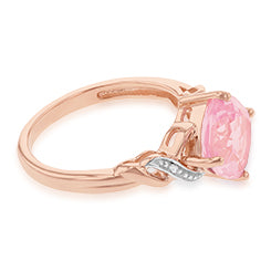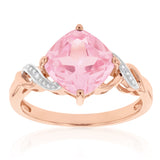 9ct Rose Gold Created Peach Sapphire and Diamond Cushion Cut Ring