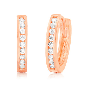 9ct Rose Gold Cubic Zirconia On 8mm Hoop Earrings