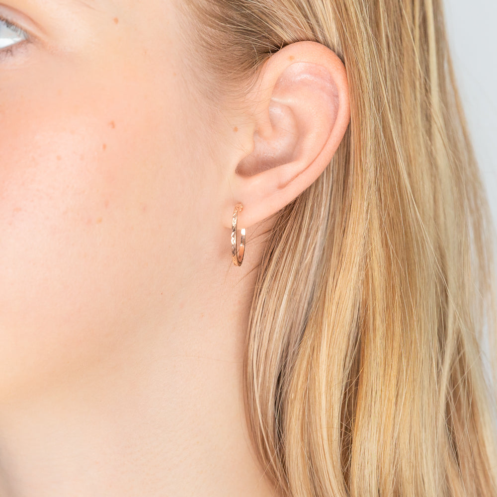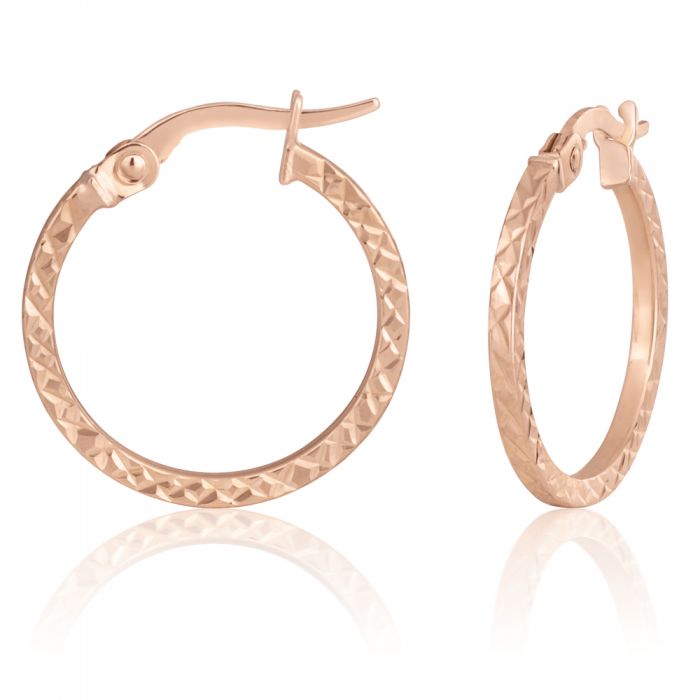 9ct Rose Gold Diamond Cut 15mm Hoop Earrings
