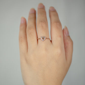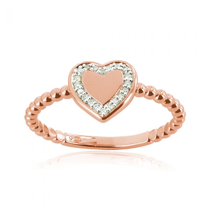 9ct Rose Gold Diamond Heart Signet Ring with 20 Brilliant Diamonds