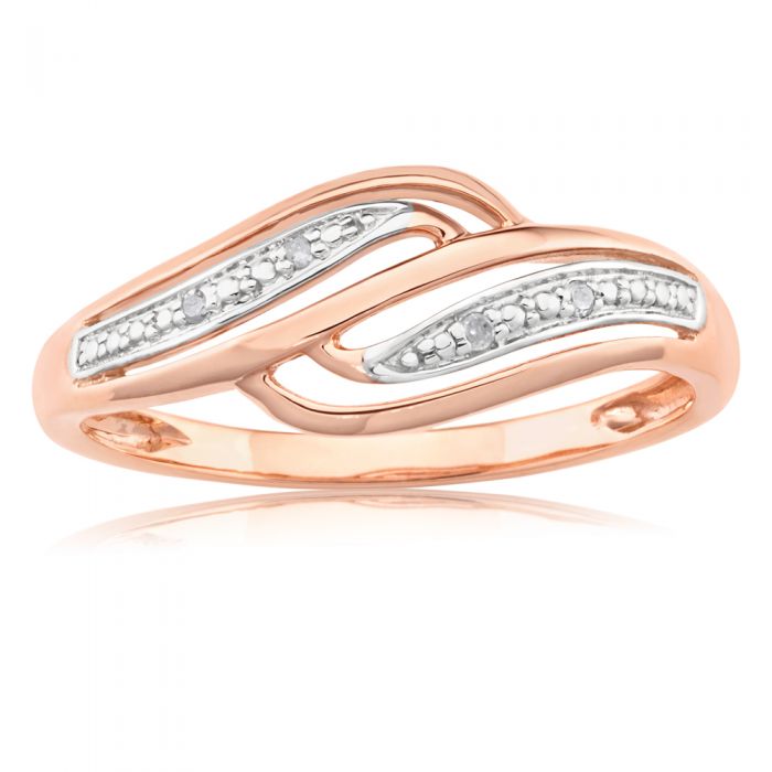 9ct Rose Gold Diamond Ring with 4 Brilliant Cut Diamonds