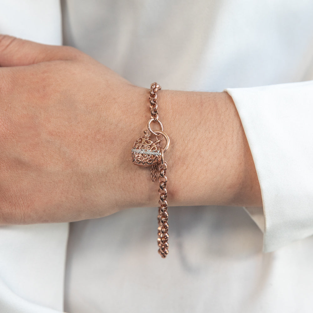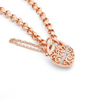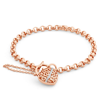 9ct Rose Gold Fancy Padlock Belcher Bracelet