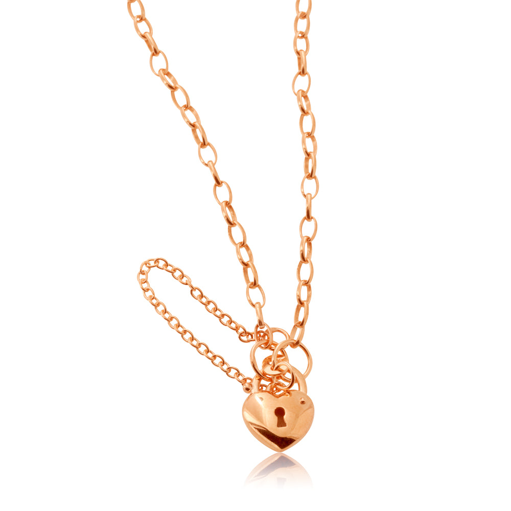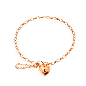 9ct Rose Gold Heart Locket Belcher Padlock Bracelet 18cm