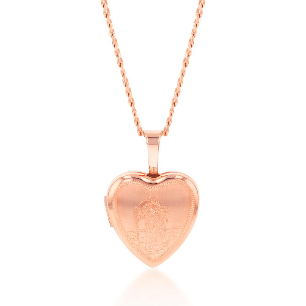 9ct Rose Gold Heart St. Christopher 12mm Locket