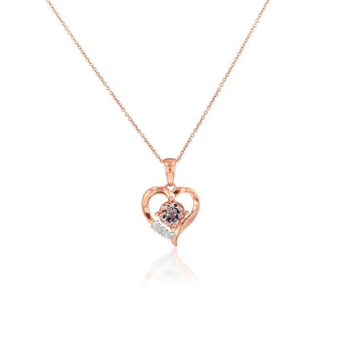 9ct Rose Gold Morganite & Diamond Heart Pendant with 44cm Chain Included