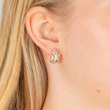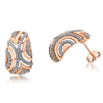 9ct Rose Gold Patterned Cubic Zirconia Half Hoop Earrings