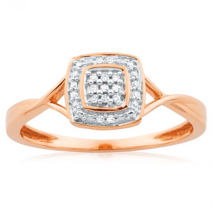 9ct Rose Gold Ring With 17 Brilliant Cut Diamonds