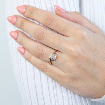 Embrace the beauty and grace of the 9ct Rose Gold Ring with 17 Brilliant Cut Diamonds—a piece that seamlessly combines modern and vintage elements, making it a striking addition to your collection and a perfect complement to your unique style.
