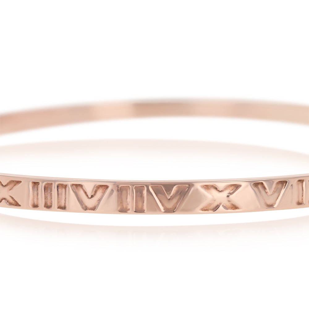 9ct Rose Gold Silver Filled 4mm Wide Roman Numeral 65mm Bangle