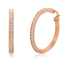 9ct Rose Gold Silverfilled Cubic Zirconia On 20mm Hoop Earrings.