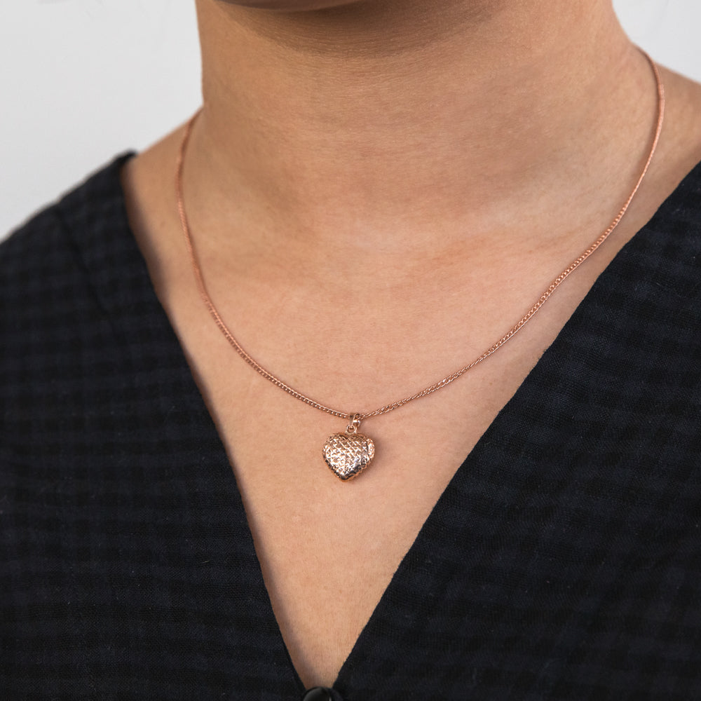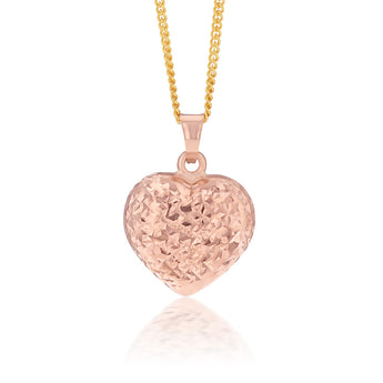 9ct Rose Gold Textured Diamond Cut Heart Pendant