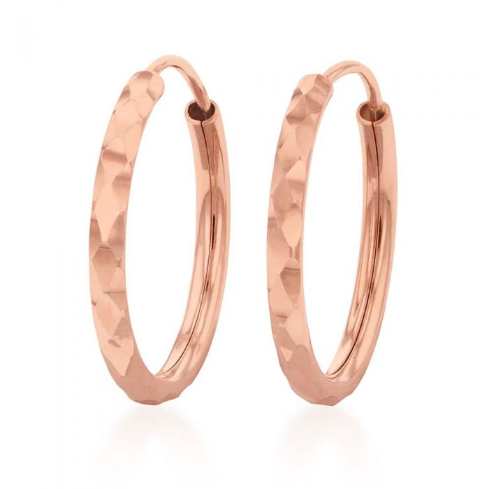 9ct Silverfilled Rose Gold 15mm Diamond Cut Sleeper Earrings