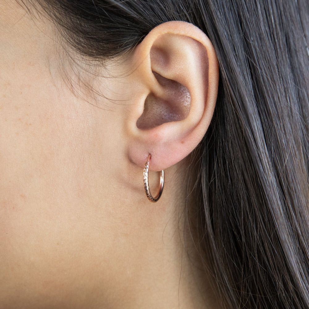 9ct Silverfilled Rose Gold Diamond Cut 15mm Sleeper Earrings