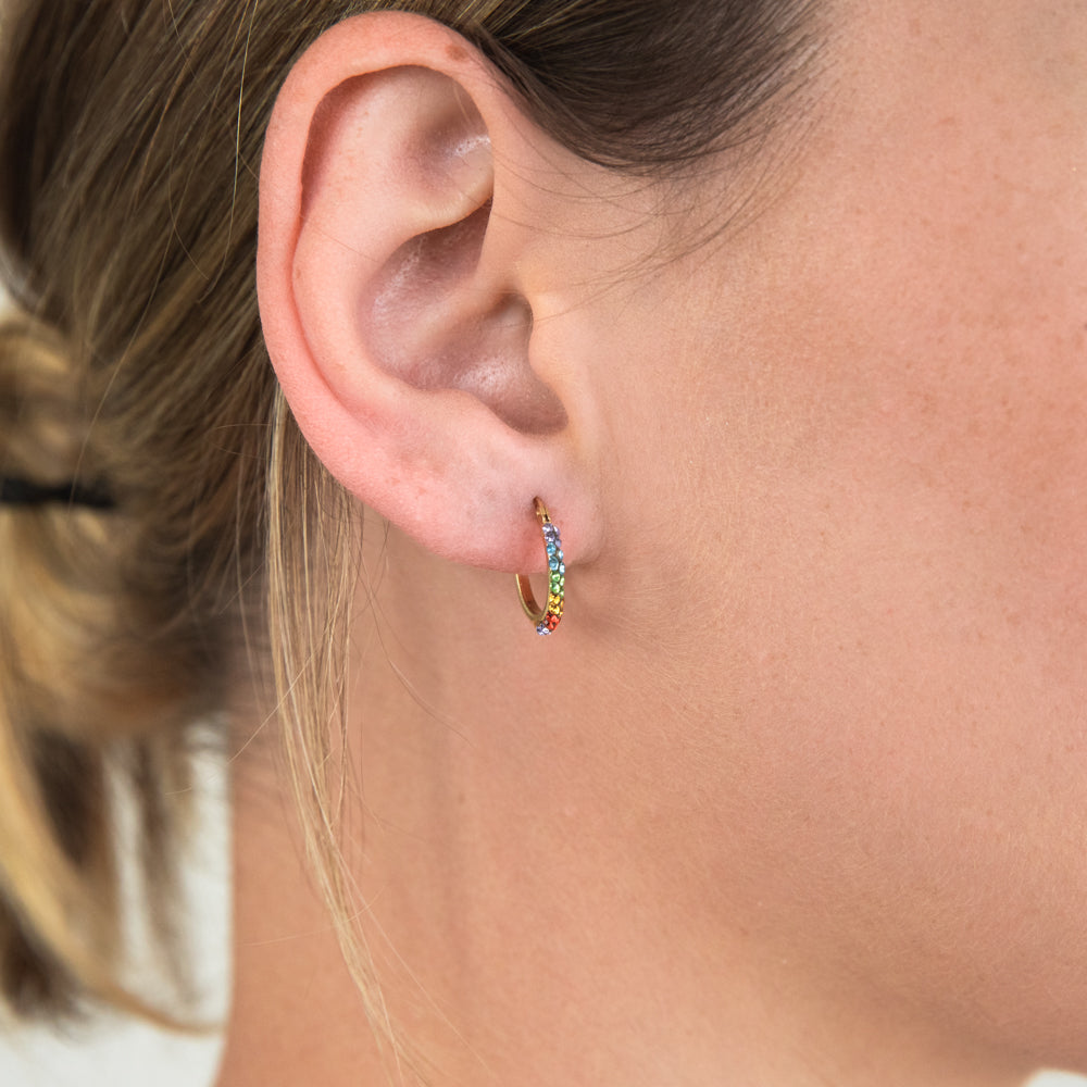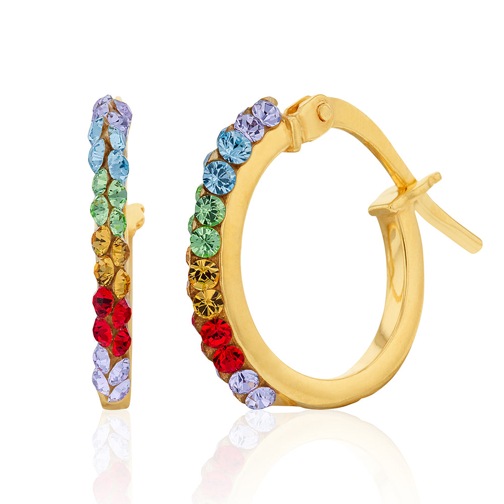 9ct Silverfilled Yellow Gold Coloured Crystal 10mm Hoop Earrings