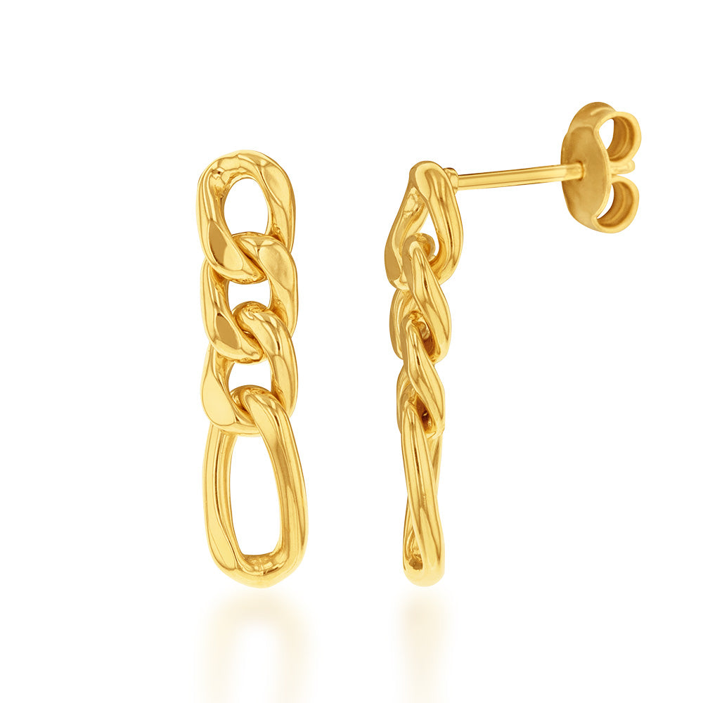 9ct Silverfilled Yellow Gold Curb Link Drop Earrings