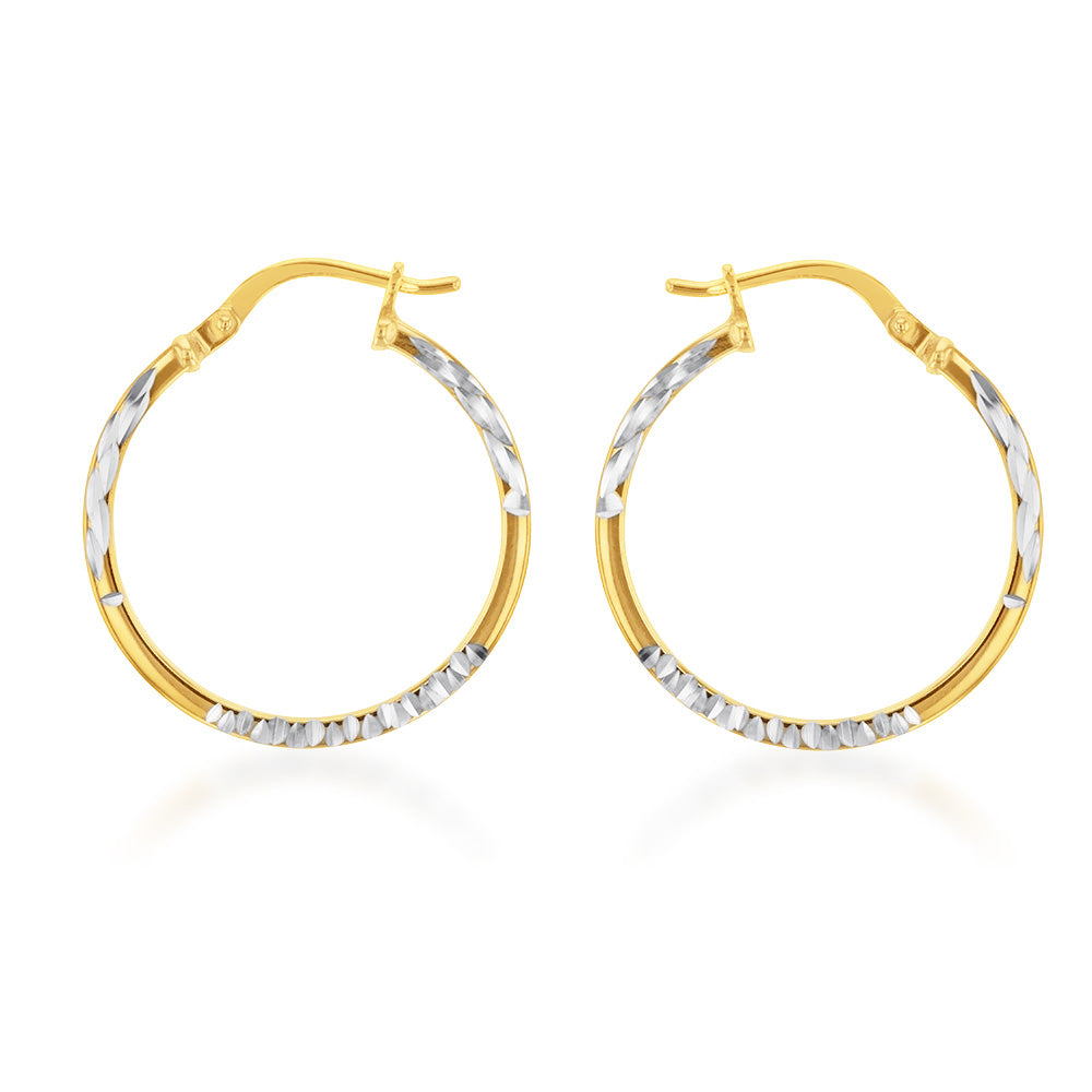 9ct Silverfilled Yellow Gold Diamond Cut 20mm Hoop Earrings