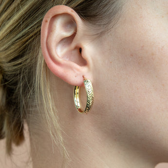 9ct Silverfilled Yellow Gold Patterned Hoop Earring