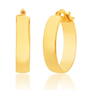 9ct Silverfilled Yellow Gold Plain 15mm Hoop Earrings