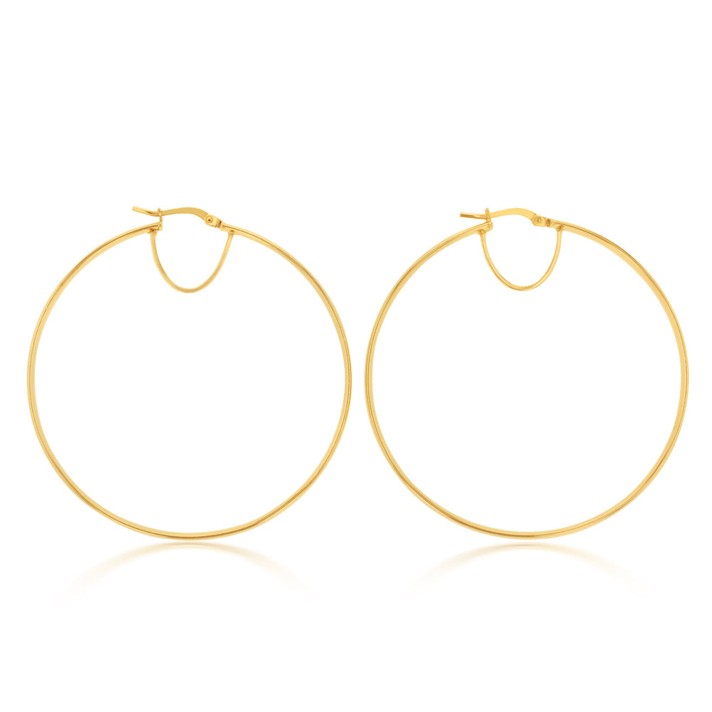 9ct Silverfilled Yellow Gold Plain 50mm Hoop Earrings