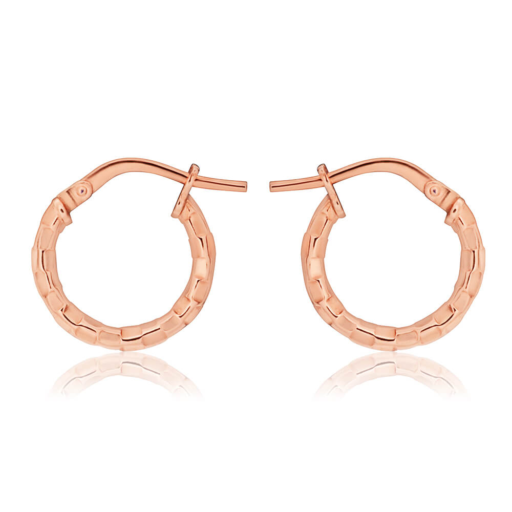 9ct Stunning Rose Gold Silver Filled Fancy Diamond Cut Hoop Earrings