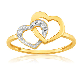 9ct Superb Yellow Gold 2 Diamonds Ring