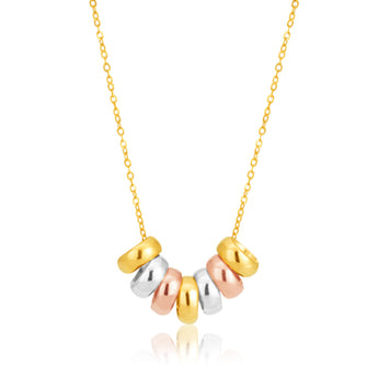 9ct Three Tone Gold 7 Rings of Luck Pendant with a 45cm cable Chain