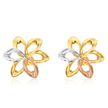 9ct Three-Tone Gold Flower Cutout Stud Earrings